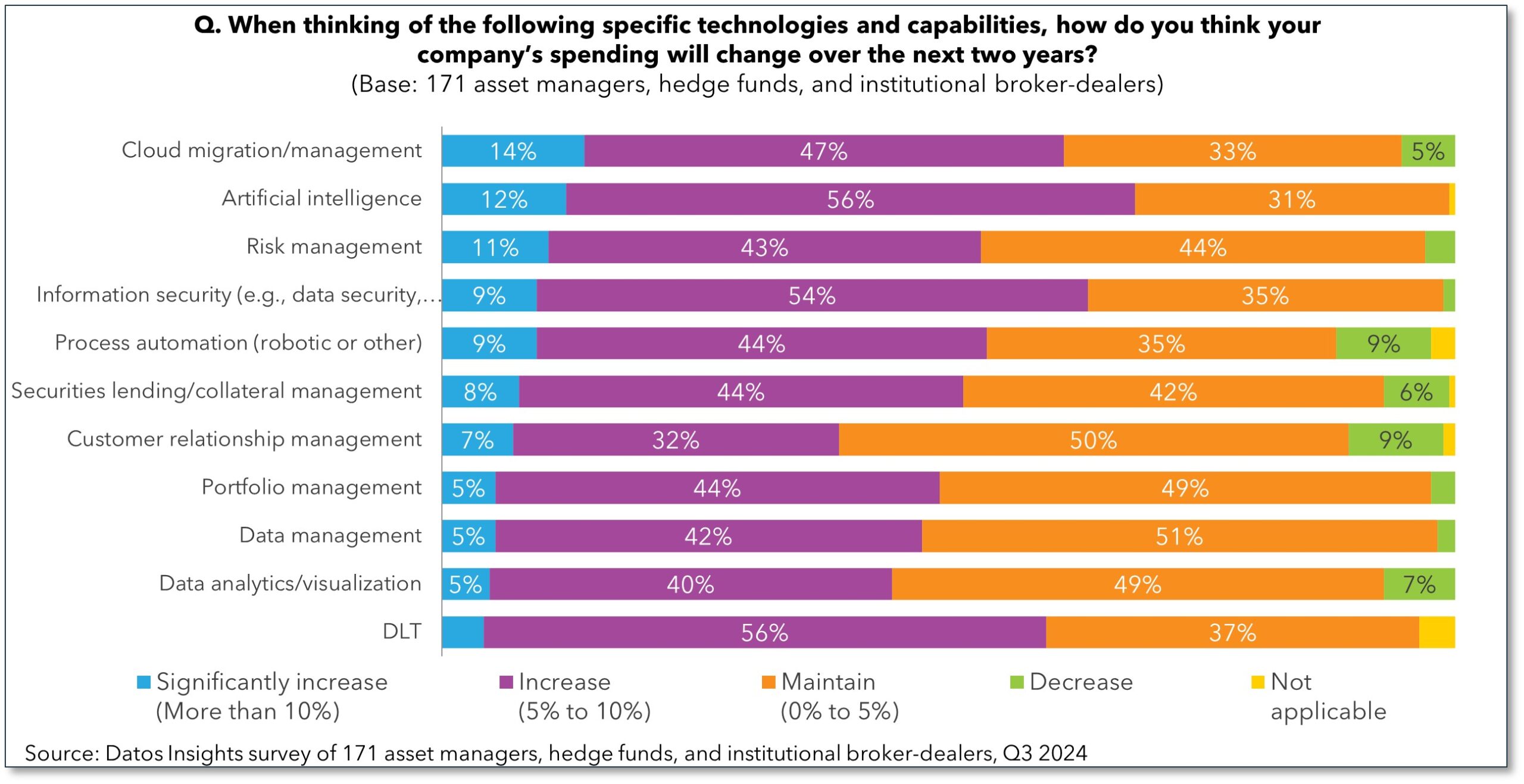 This report provides insights into some of the key trends driving technology adoption within the DLT space associated with capital markets, analyzing decision-makers’ affinity for technology innovation and spending focus for the next two years. It is based on a Q3 2024 survey of 171 senior technology and operations executives in capital markets.